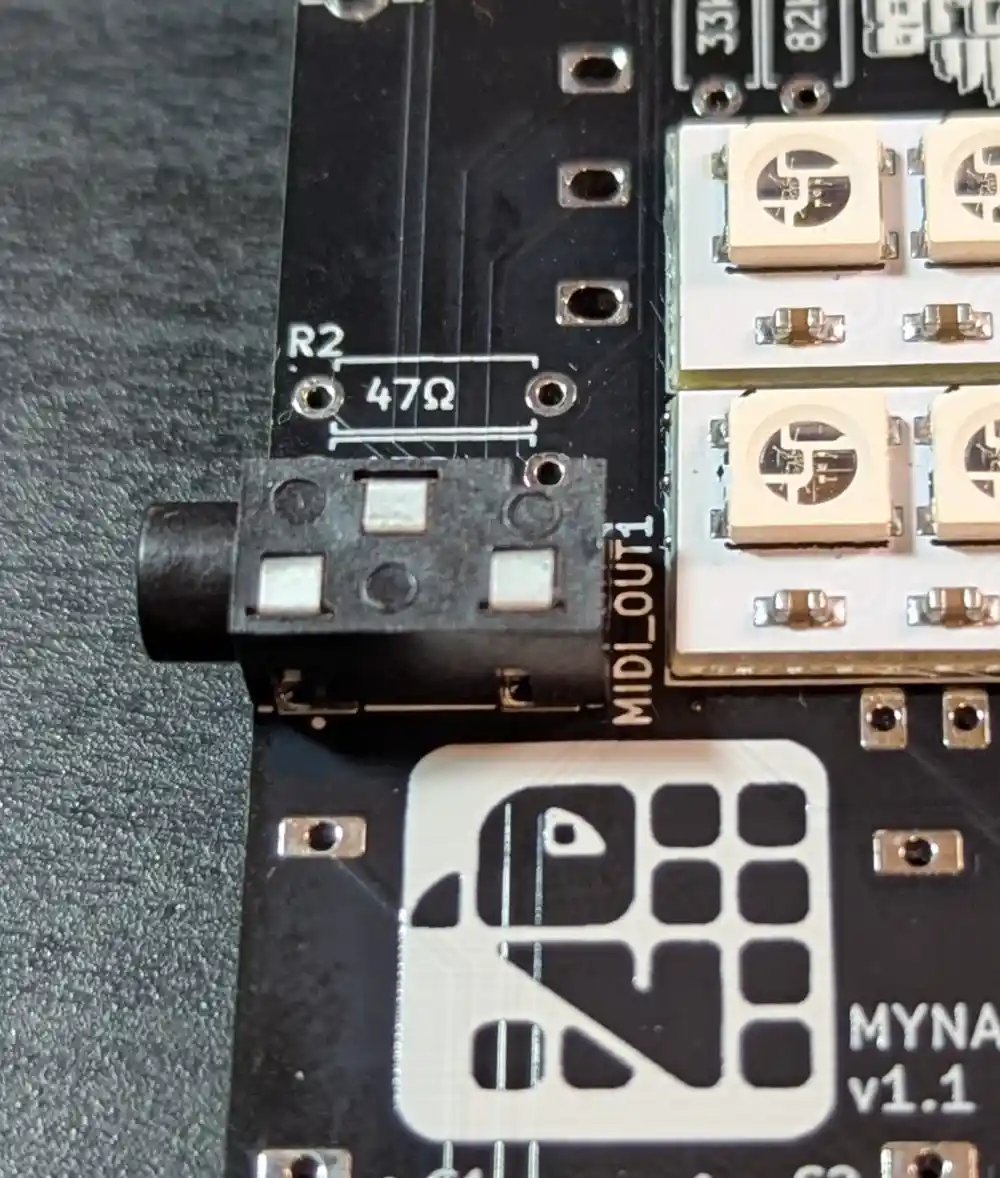 This is our MIDI output jack appropriately marked MIDI_OUT1 on the PCB.
