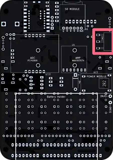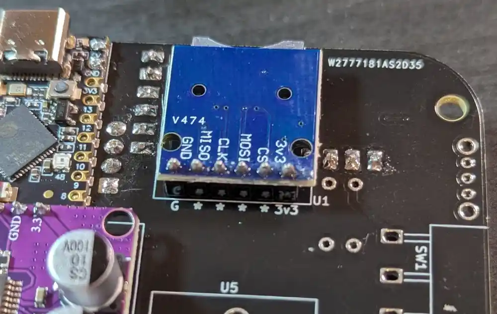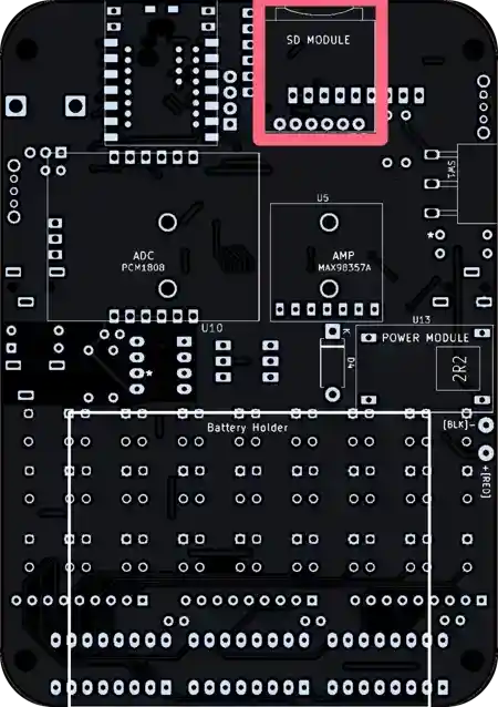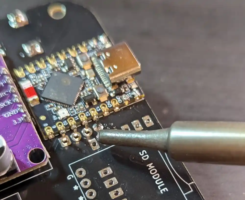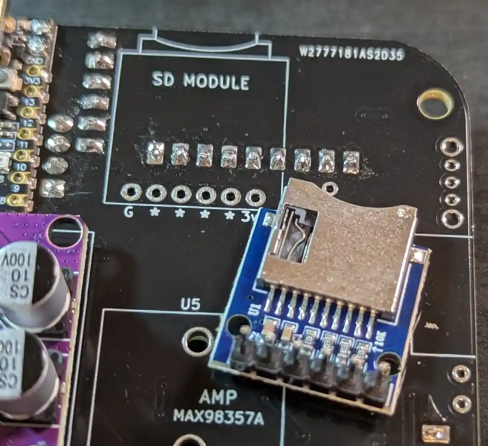 Next, we’ll be adding the SD module (labeled as such on the PCB) on the bottom of the board.