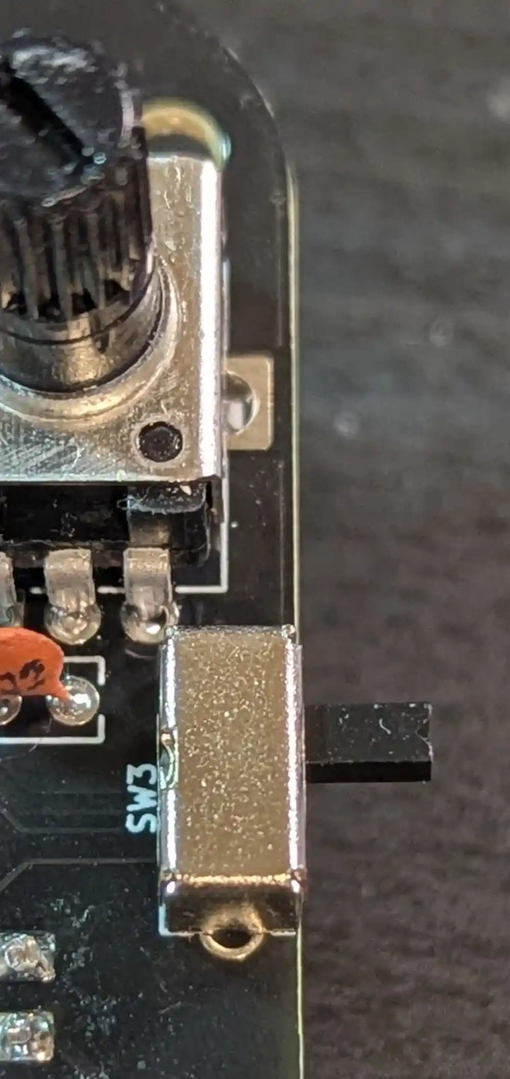 It will be hard to fit the PCB in the enclosure if the large switch is not flush against the PCB. It should look like the image.
