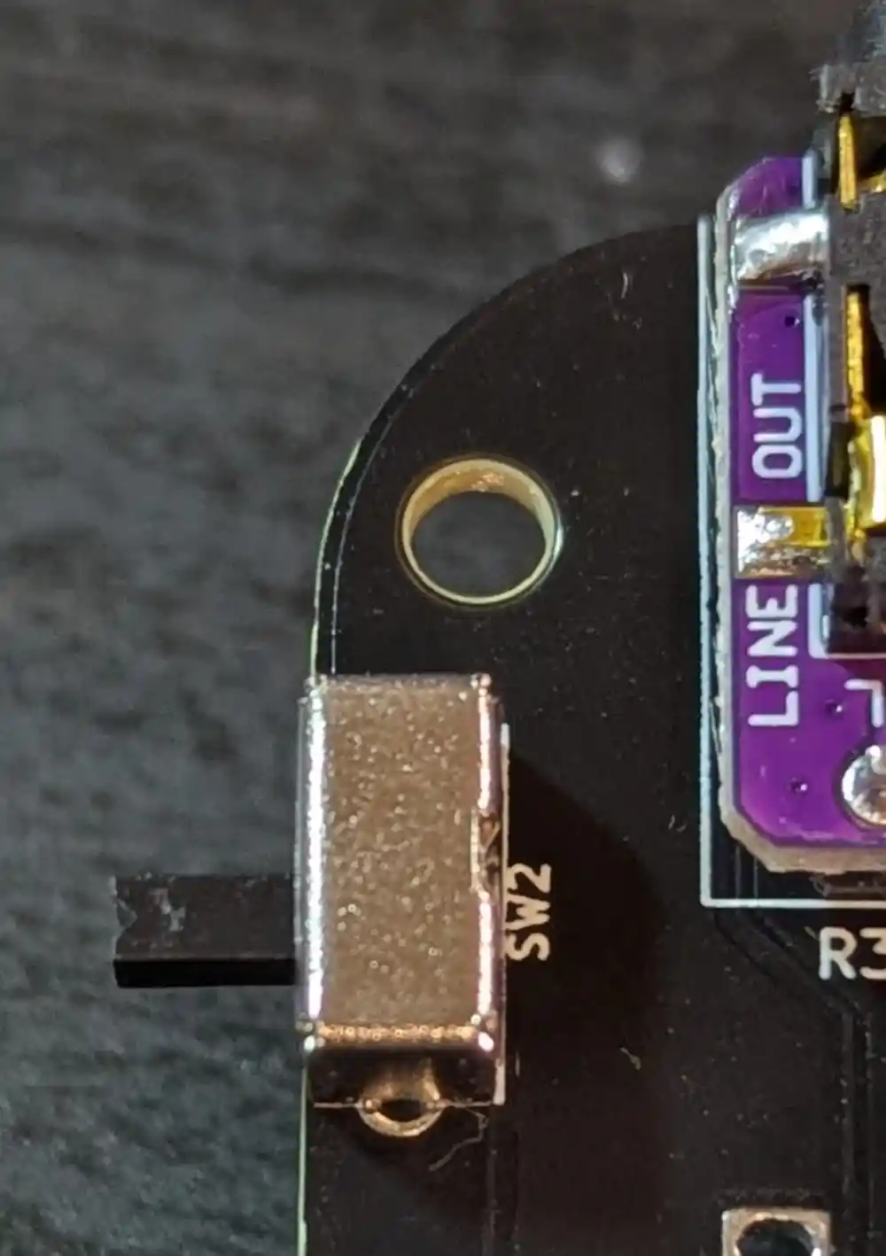 On the top side of the board, the small slide switches are marked as SW2 and SW3