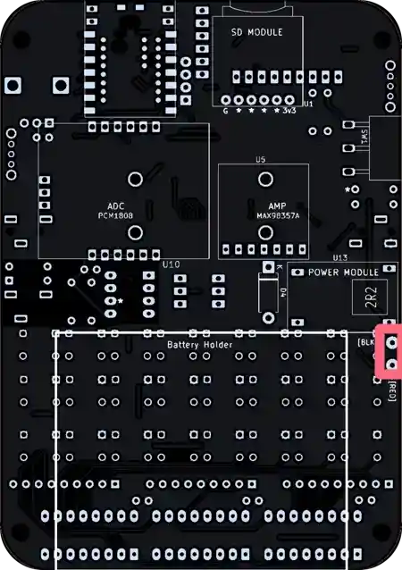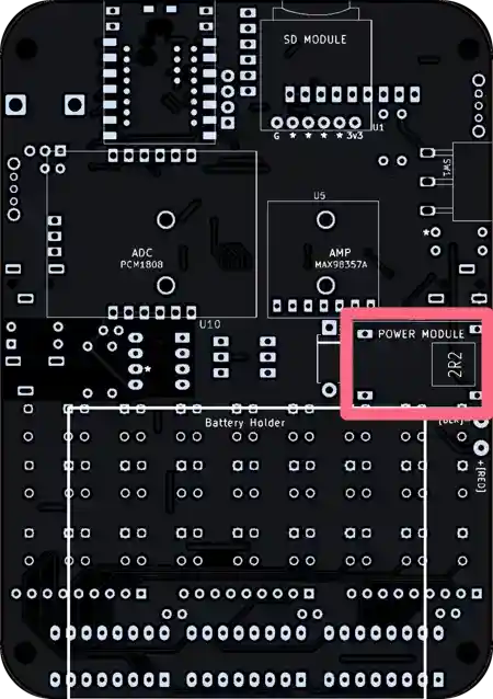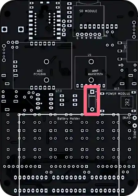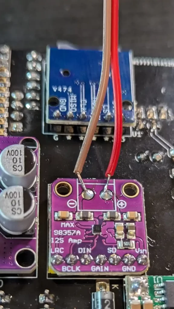 Aha, there’s no footprint for the speaker leads, because it’s soldered to the amp module.