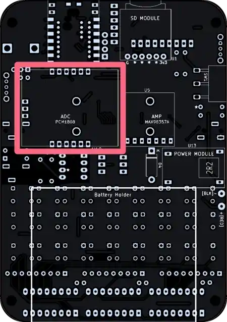 The PCB footprint is marked ADC PCM1808.