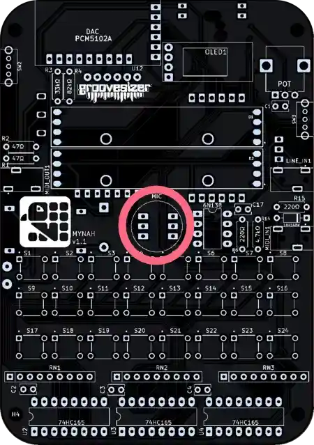 Also located on the top of the board, the footprint is marked MIC.